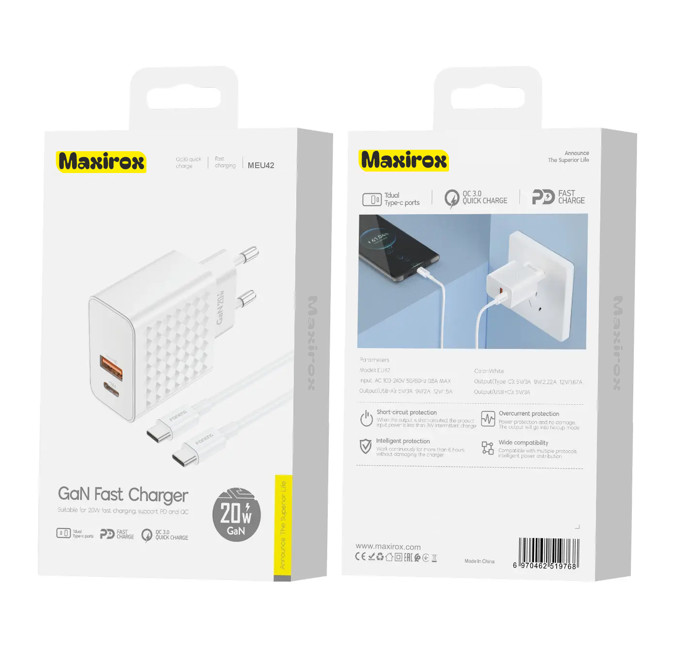 Output USB: 5V=3A 9V=2A 12V=1.5A