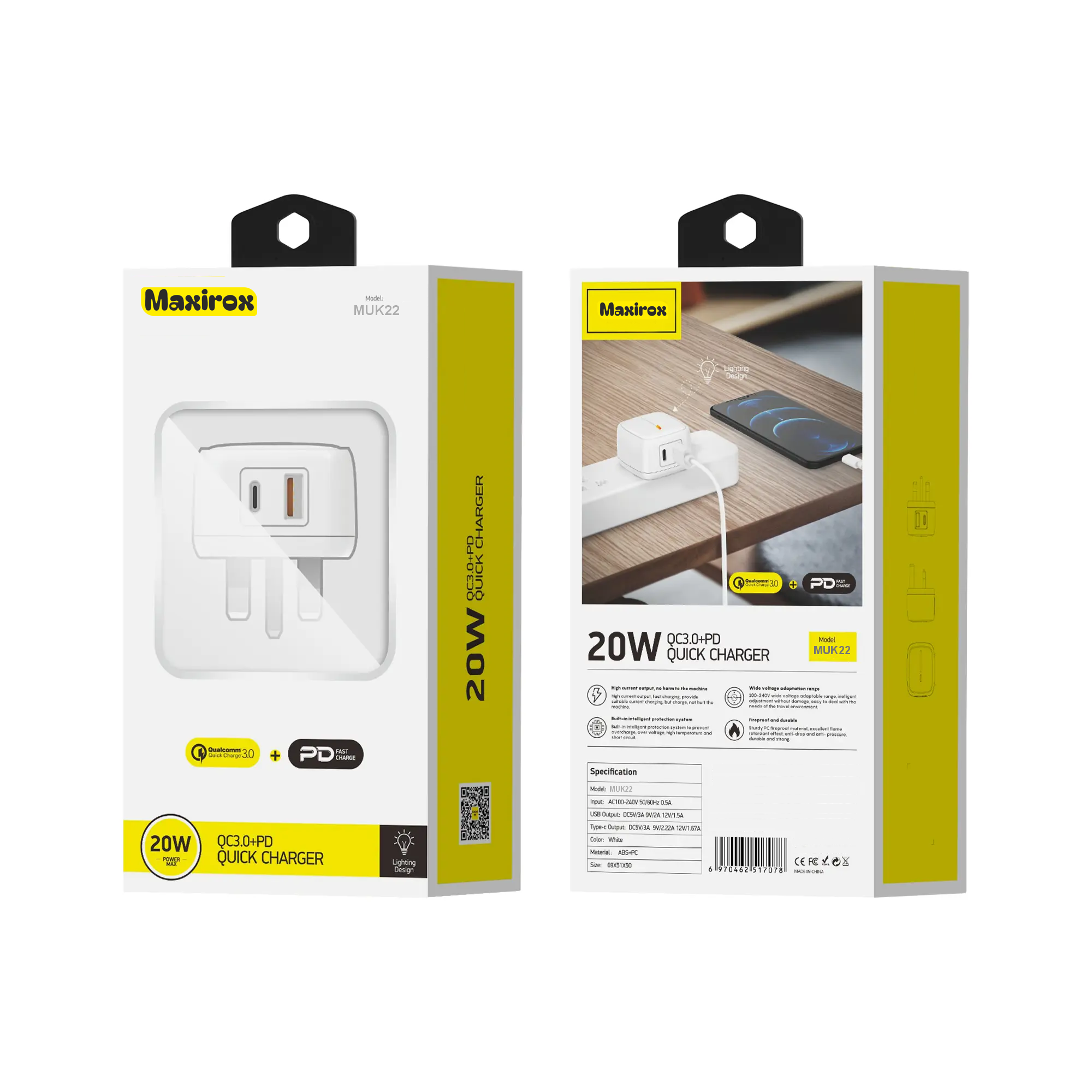1. QC+PD fast charge charging kit, dual U output for convenient charging