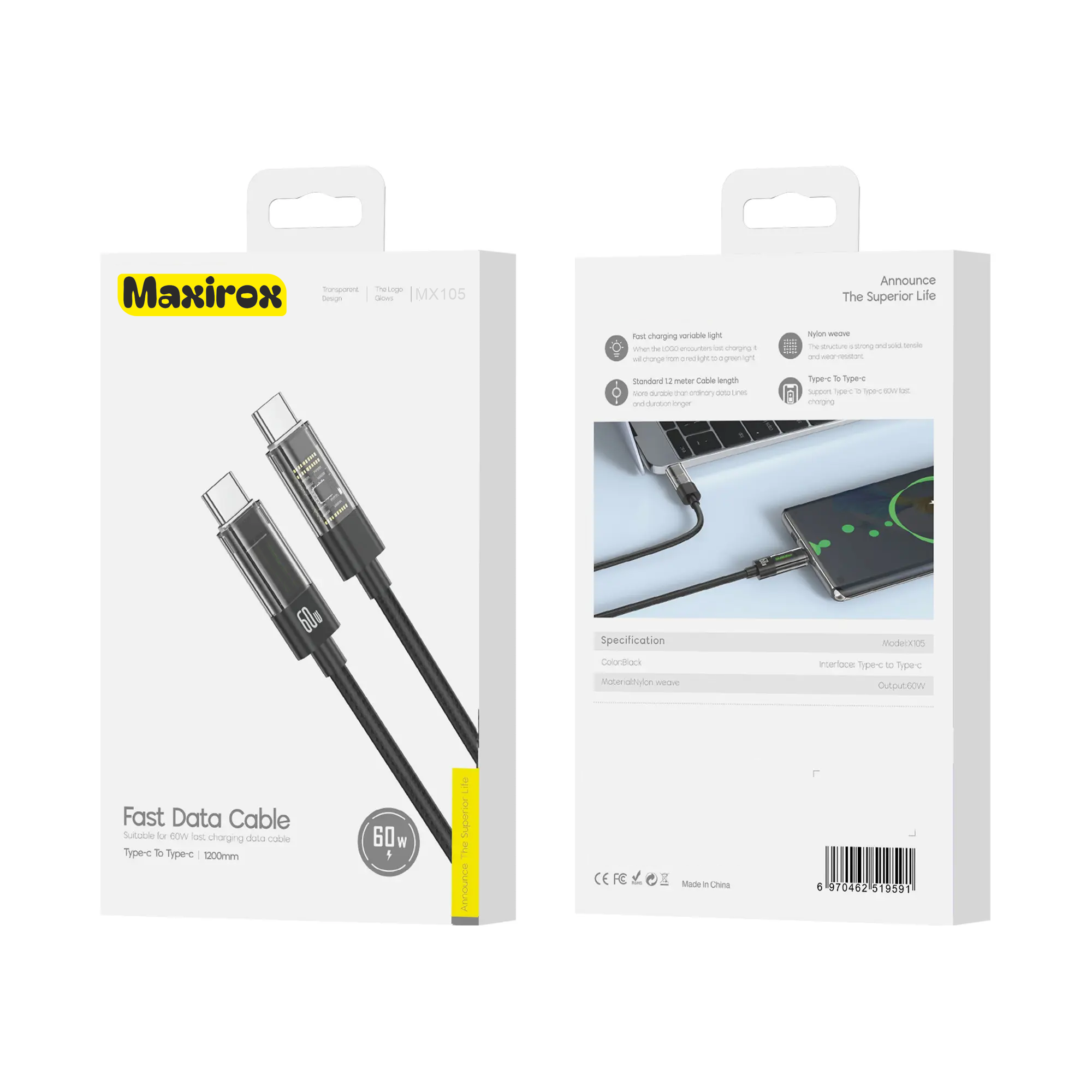 MX105 1.2M Transparent Head Braided Cable (60W / PD27W)