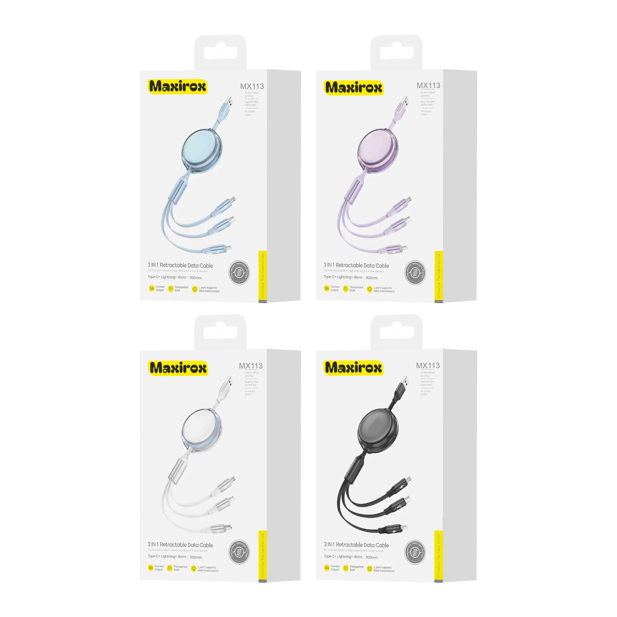 MX113 1.1M 3-in-1 Retractable Flat Cable (2.1A+2.4A+3A)