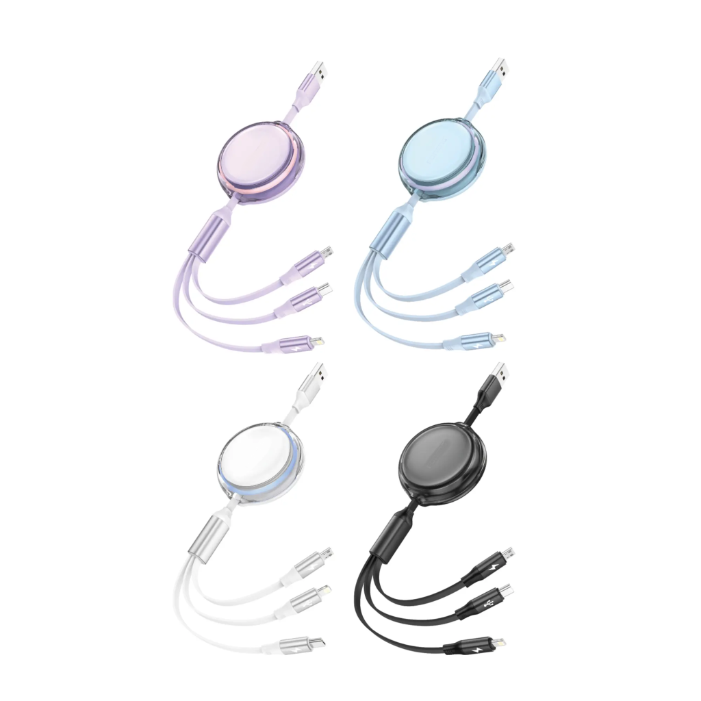 MX113 1.1M 3-in-1 Retractable Flat Cable (2.1A+2.4A+3A)